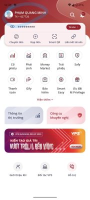 Sau khi mở tài khoản chứng khoán VPS thì bạn phải Xác thực tài khoản VPS qua ứng dụng SmartOne. Nếu cần hỗ trợ về nạp tiền, rút tiền hay bất kỳ vấn đề nào khác. Hãy liên hệ với chúng tôi bằng cách nhắn tin trực tiếp qua Facebook với biểu tượng Messenger ở góc dưới bên phải màn hình.